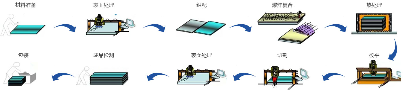 不銹鋼復合板爆炸復合的生產方法。 爆炸復合是將不銹鋼板重疊置于碳鋼基板上,不銹鋼板和碳鋼基板之間用墊子間隔出一定的距離,在不銹鋼板上面平鋪炸藥,炸藥爆炸的能量使不銹鋼板高速撞擊碳鋼基板,產生高溫高壓使兩種材料的界面實現固相結合。 不銹鋼復合板是以碳鋼基層與不銹鋼覆層結合而成的復合板鋼板。它的主要特點是碳鋼和不銹鋼形成牢固的冶金結合,可以進行熱壓、冷彎、切割、焊接等各種加工,有良好的工藝性能。不銹鋼復合板的基層材料可以使用Q235B、Q245R、Q345B,Q345R等各種普通碳素鋼和專用鋼。覆層材料可以使用304、316L、321和雙相不銹鋼等各種牌號的不銹鋼。材質和厚度可以自由組合,滿足不同用戶的需要。不銹鋼復合板已經廣泛應用于石油、化工、鹽業、水利電力等行業。不銹鋼復合板作為一種資源節約型的產品,減少貴重金屬的消耗,大幅度降低工程造價。實現低成本和高性能的***結合,有良好的社會效益。 不銹鋼復合板是怎樣生產的呢?不銹鋼復合板工業化生產主要有兩種方法,爆炸復合和熱軋復合。爆炸復合板的生產工藝是將不銹鋼板重疊置于碳鋼基板上,不銹鋼板和碳鋼基板之間用墊子間隔出一定的距離。不銹鋼板上面平鋪炸藥,炸藥爆炸的能量,使不銹鋼板高速撞擊碳鋼基板,產生高溫高壓使兩種材料的界面實現固相焊接。理想狀態下,界面的每平方毫米的剪切強度可以達到400MPa以上。熱軋復合板工藝是以碳鋼基板和不銹鋼板處于物理純凈狀態,在高度真空條件下進行軋制而成。在軋制過程中兩種金屬擴散實現完全的冶金結合。但是不能解決10mm以上金屬的復合,這種焊接只具有壓軋焊接的特點,不像爆炸焊接融合了壓力焊、熔化焊、和擴散焊的特點,爆炸焊為不同基體金屬的結合提供了更多和更好的條件。正因為如此,同種和異種金屬都可以爆炸焊接以上兩種復合板制造方法都執行GB/T-8165-1977國家標準。該標準非等效采用日本JISG3601-1990標準,主要技術指標相同或高于日本標準?! ∧敲幢◤秃瞎に囂攸c如何呢?爆炸復合的特點:一、由于爆炸復合是冷加工,因此它可以產生100多種金屬復合板,如鈦、銅、鋁等等。二、爆炸復合可以生產不銹鋼復合板總厚度可以達到幾百毫米厚的不銹鋼復合板,不銹鋼復合板兼具各種碳素鋼和不銹鋼的特點,以其優異的性能價格比為用戶歡迎,有廣闊的市場前景。但有趣的是,從五十年代開始,經過半個多世紀風風雨雨的開發過程,仍然有很多人不知道它。更多的人未使用過它。應該說不銹鋼復合板的市場遠未進入成熟期,仍在開發過程中。科技工作者為建設資源節約型社會的探索和努力永遠不會停止。洛陽京久金屬復合材料有限公司致力于各種金屬爆炸復合材料的研究與開發生產,永不停歇的努力滿足社會發展對金屬復合材料的需求。
